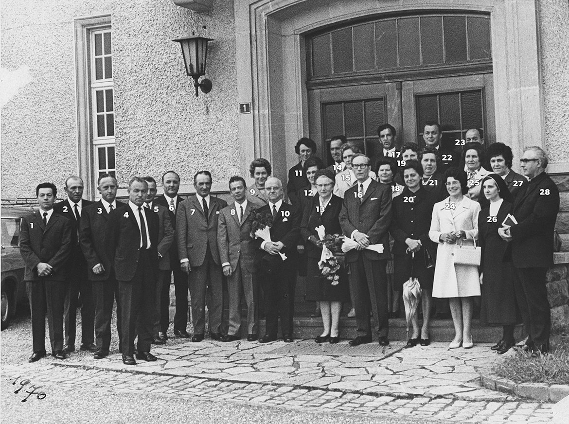 1. Leo Mangen, 2. Nic Reding, 3. Antoine Kieffer, 4. Jean Hoffmann, 5. René Zigrand, 6. René Mertens, 7. Henri Diederich (Buergermeeschter), 8. Martin Seyler, 9. Cécile Bour-Harpes, 10. Léon Quaring (Schoulmeeschter), 11. Marie Harpes-Welter, 12. Marguerite Majerus, 13. Amélie Weyland (Léierin), 14. Willy Mertens, 15. Lucie Bloes-Olsem, 16. Nicolas Engel (Schoulmeeschter), 17. Eugène Hutmacher, 18. Louise Mertens-Seyler, 19. Marie Welter-Kieffer, 20. Hélène Goetzinger-Kousmann, 21. Lucie Grisius, 22. Arthur Calmes, 23. Josy Schroeder, 24. Léonie Siebenaler-Schaack, 25. Marie Soisson-Bodeving, 26. Virginie Fisch (Schwëster Jean-Françoise), 27. Ketty Fisch, 28. Martin Schroeder (Paschtouer)