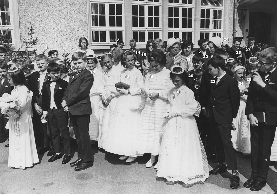 1* Marcel Gousenbourger, 3. Isabelle Asseray, 4. Jeanny Bourg, 5. Marcel Weber, 6. Agnes Steichen, 8. Roland Urbain, 7. Paul Moecher, 9. Marie-Thérèse Kieffer, 10. Michèle Zigrand, 11. Marie-Laure Gergen, 12. Emile Braun, 13. Pia Plier, 14. Louis Weyland, 17. Hélène Mangen, 18. Micheline Bernard, 19. Marie-Paule Bertemes, 21. François Schroeder, 22. Marie Welscher, 24. Jean-Pierre Steichen, 25. Gust Flammang, 27. Paul Bour, 28. Germaine Meyres