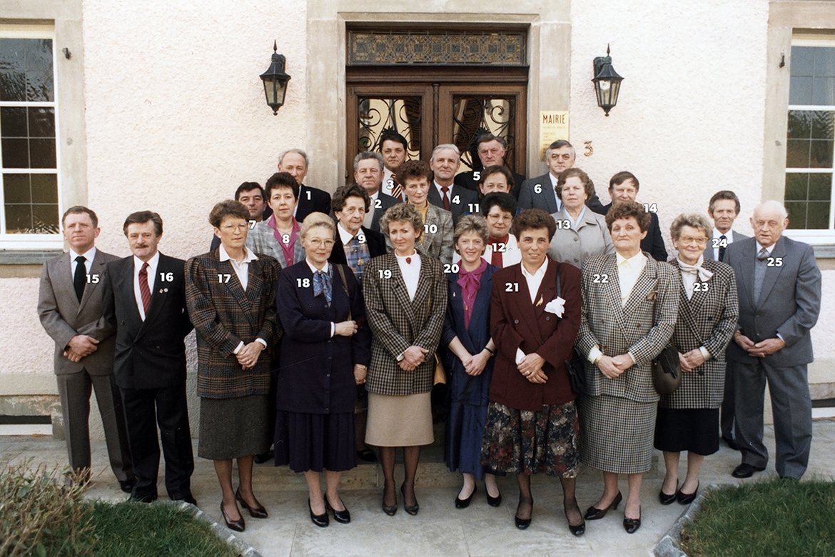 1. Marcel Schreiber, 2. Félix Seyler, 3. Emile Breyer, 4.Jean-Pierre Schreiber, 5. Léo Gregorius, 6. Armand Gergen, 7. Eugène Ley, 8. Marie Martiny-Schaus, 9. Sisy Poos-Walerius, 10. Renée Schreiber-Weber, 11. Marthe Antony-Heyart, 12. Justine Jacquemoth-Mores, 13. Anne Seyler-Weiler, 14. Victor Weber, 15. Will Antony, 16. Ed Matgen, 17. Thérèse Peschon-Huberty, 18. Rosette Schlesser-Lecomte, 19. Jenny Weyland-Schaus, 20. Claire Calmes-Huet, 21. Triny Calmes-Koob, 22. Margot Hutmacher-Breyer, 23. Cecile Bour-Harpes, 24. Erny Lallemang, 25. Philippe Harpes