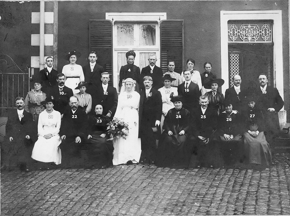 1. Louis Weyland ?, 12. Léo Weyland, 13. Marie-Suzanne Weyland, 14. François Origer, 19. Louis Peschon, 22. Constant Weyland, 24. Barbe Weyland-Peschon,